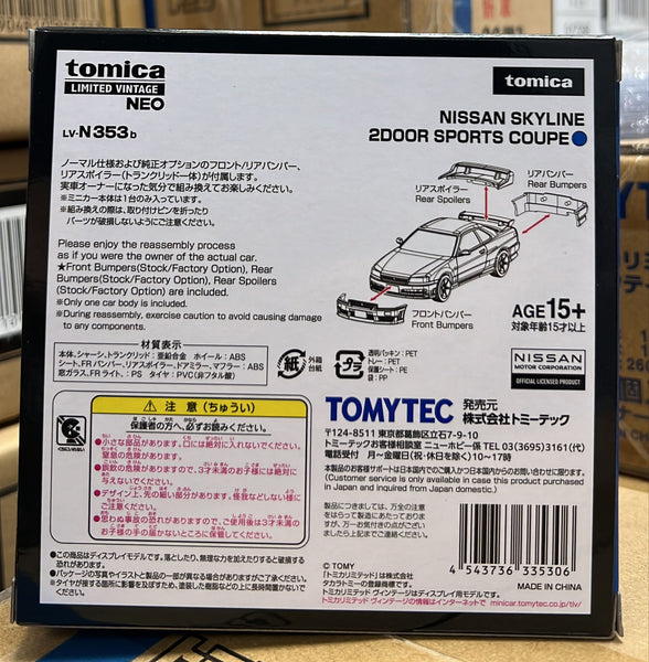 1:64 Tomica Limited Tomytec LV-N353b Nissan Skyline 25 GT Turbo 2 door Sport Coupe 2000 with optional parts.
