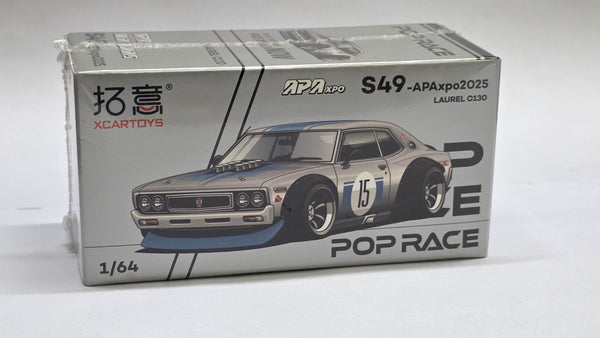Pop Race X Xcartoys Nissan Laurel C130 S49. China Foshan APA Expo 2025. Scale is 1:64. Brand new with sealed box.