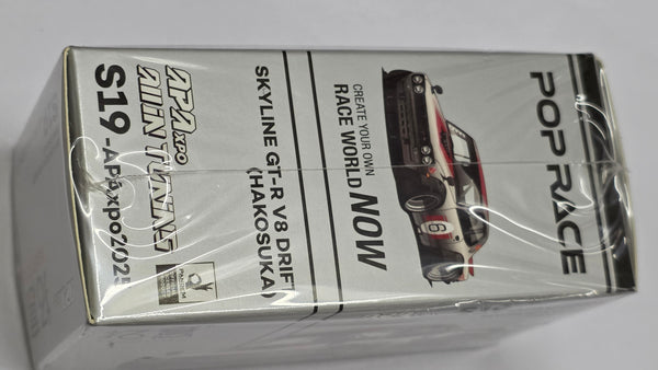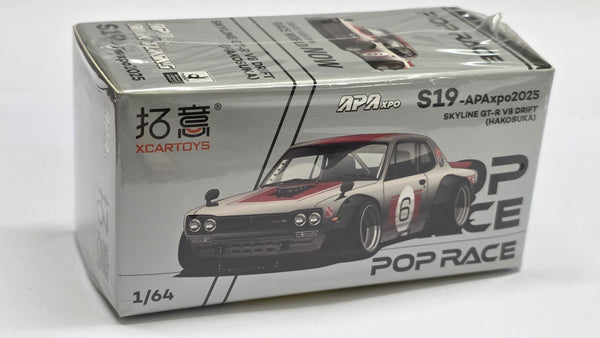 Pop Race X Xcartoys Nissan Skyline GT-R V8 Drift HAKOSUKA. China Foshan APA Expo 2025. Scale is 1:64. Brand new with sealed box.